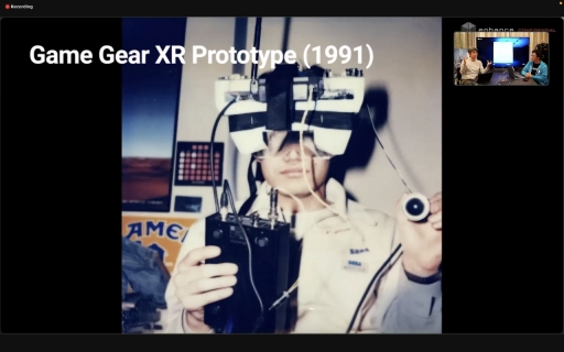 水口氏のセガにおける初仕事は,同社の携帯ゲーム機「ゲームギア」を分解し,今で言うXRヘッドセットのプロトタイプを制作したことだったそうだ。そのヘッドセットを役員会に持ち込んだところ,「面白いが,少し早すぎるのでは」という反応だったが,新しいことに取り組む姿勢が買われ,アーケードゲームの開発に携わることに。