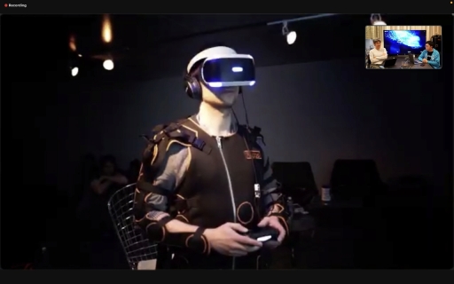 このデバイスは全身に24個の振動子が付いており,たとえばバスドラムが鳴ったら足元が振動し,ハイハットが鳴ったら肩が振動するといったように,ゲームの音と連動した触覚体験ができる。なおこのデバイスは研究用に開発されたとのことで,水口氏は「こうしたプロジェクトは,いつか大きなものにつながっていくのではないか」と期待を示した。