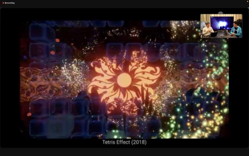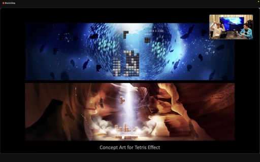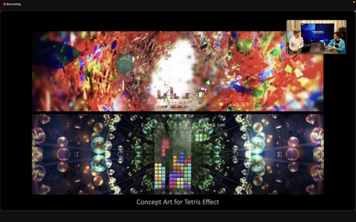 ザ・テトリス・カンパニーの共同創設者で,かつて「テトリス」の権利取得に尽力したことでも知られるヘンク・ロジャース氏とも,同作の魅力について語り合ったことがあるという。その内容は,「ゲームが進んでスピードが上がっていくと,上手いプレイヤーは頭で考えずに身体で反応してゾーンやフローと呼ばれる集中状態に入っていく。その状態を音楽の力で拡張できないか」というもので,ロジャース氏は「Rez」や「ルミネス」を作った水口氏らならば実現できるのではないかと話していたという。
