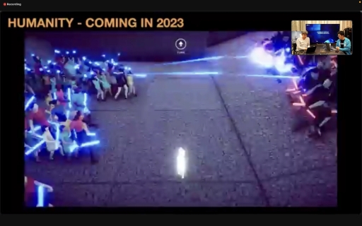 講義の終盤では,エンハンスの最新作「HUMANITY」(PS5 / PS4 / PC)が取り上げられた。