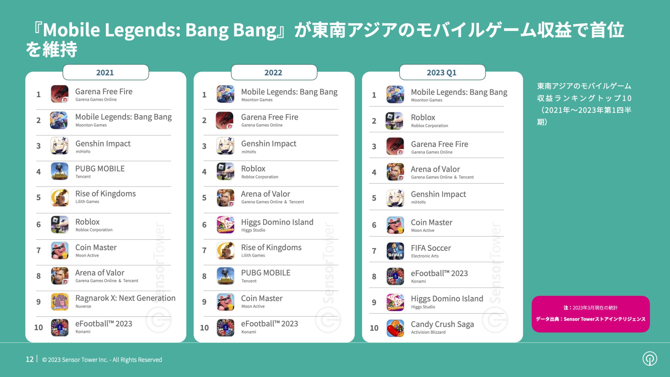 東南アジアのIAP収益トップはMOBA,安定状態から再び増加傾向へ。Sensor Towerが2023年版東南アジアモバイルゲーム市場レポートを公開