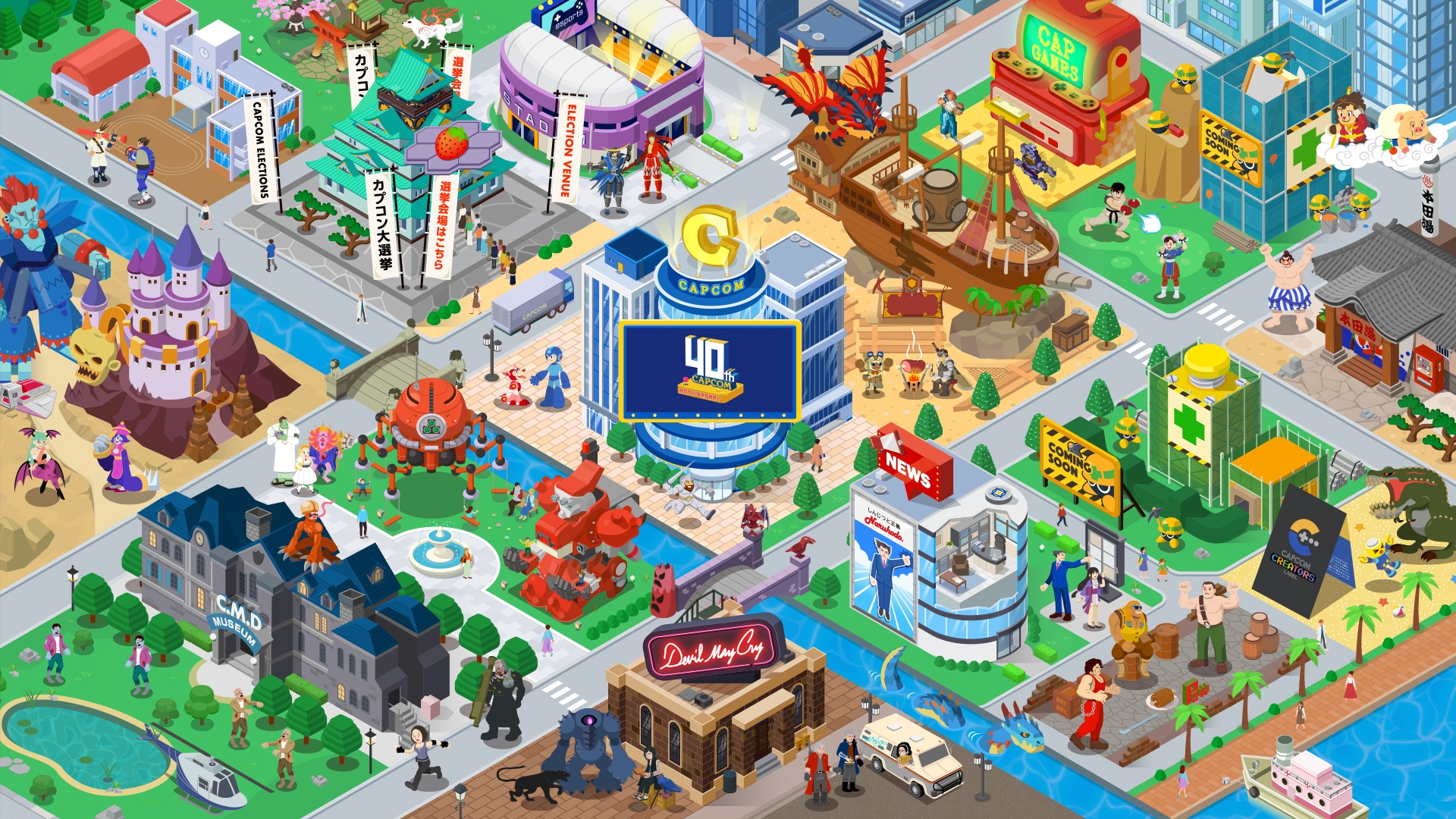 ロックマンやファイナルファイトなどが遊べるコーナーを設置。創業40周年を記念したデジタル観光地「カプコンタウン」本日オープン