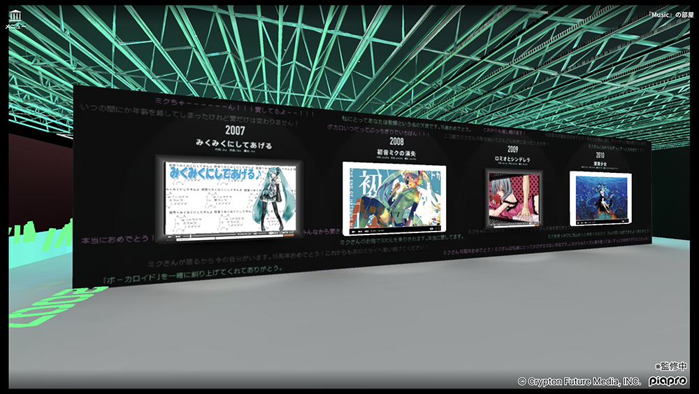 「初音ミク」誕生16周年を記念したオンライン展示会「MIKU 16th Virtual Exhibition」が8月1日より開催。イラストコンテスト応募作品などを展示
