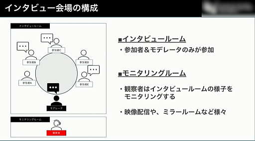 また,前述のように関係者は別室でインタビューの模様をモニタリングするのだが,加藤氏は,リアルタイムで確認することを推奨していた。