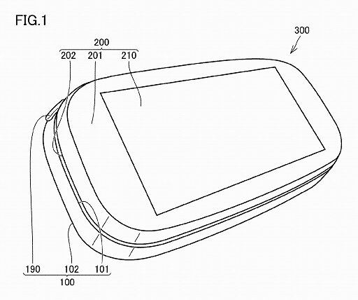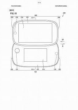 公開されている情報によると,本デバイスは2つの装置からなり,これらは「脱着可能である」という。どちらの装置にもディスプレイがあり,片方は大きめのディスプレイが,もう片方は小さめのディスプレイと入力装置と思われる図が描かれている。パっと見,2画面スタイルのニンテンドーDSのような雰囲気だ。