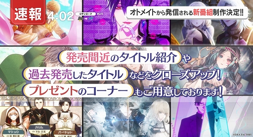オトメイトの新情報番組が公式YouTubeチャンネルで5月から配信決定。第1回は新作タイトルのキャスト発表も
