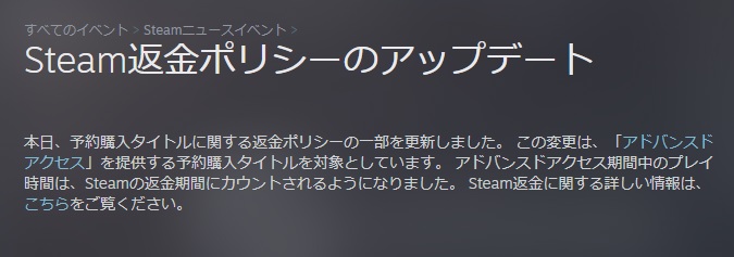Steamの返金ポリシーが一部変更される。予約購入により発売日以前にプレイした時間も“2時間以内”の対象に