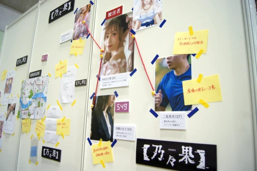 KONAMIとブシロードクリエイティブ,ドロッセルマイヤーズが共同展開するボードゲームレーベル「ヨフカシプロジェクト」のブースでは,マーダーミステリー「キルタイム・キラーズ 絶泉館の殺人」の世界観を引き継ぐ新作「キルタイム・キラーズ THE BOARD GAME 真明市連続殺人事件」が発表されていた。