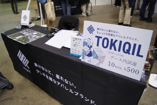 個人的に興味を惹かれたのは,アパレルブランド「TOKIQIL」のブースだ。TOKIQILのコンセプトは“解けないと着れない”とのことで,展示されたTシャツに隠された謎を解かなければ購入すらできない。しかも,それぞれの謎がけっこう難しいのだ。
