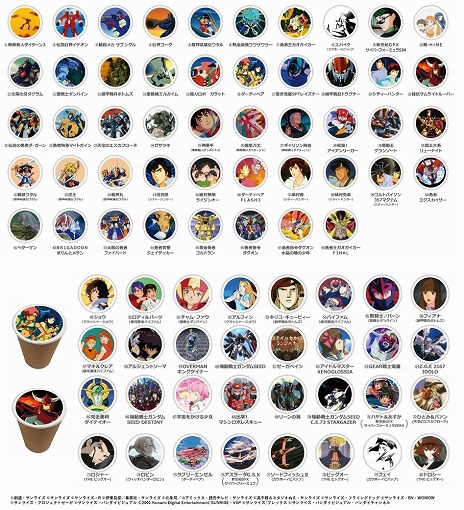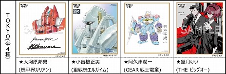クリエイター描き下ろし複製ミニ色紙をプレゼントするとのこと。カフェコーナーでは,サンライズブランド作品のイラストをプリントした,全80種のラテアートドリンクも販売される。こちらの価格は各690円(税込)。