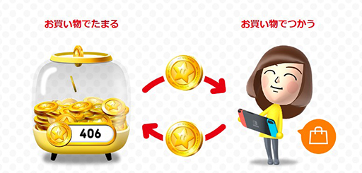 ゴールドポイントは,ソフトを購入した時などに入手できるポイントで,貯めたポイントは,Nintendo Switchソフトなどのダウンロード購入に1ポイントあたり1円で使用できる。