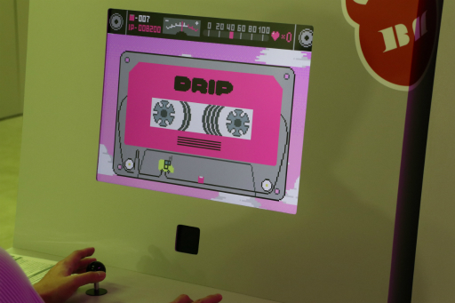 「‘DRIP’ Pixel Game」は,楽曲「DRIP」のミュージックビデオに登場するカセットテープをモチーフにしたアーケードゲームである。レバーでクルマを操作して,ボタンでジャンプし障害物を避けるという,シンプルなレトロ調のゲームに仕上がっている。