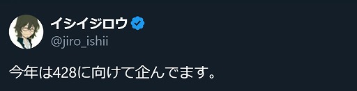 「428」に何か動きがあるかも。ゲームクリエイター・イシイジロウ氏,「428に向けて企んでいます」と繰り返し投稿