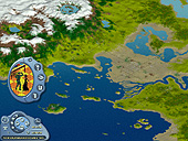The Sims Onlineの世界は,山や河川,砂漠,森林地帯などが混在するシムシティーの出だしのようなもので,それぞれの地区に20都市が用意されている。サーバーを混雑させないために1キャラクターにつき家一軒が基本となるため,三つのキャラクターが保有する建物を使い回したり,友人と家と店舗一軒ずつ共有することも可能だ。