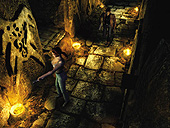 過去3タイトルの売上が累計250万本にも達する"アローン イン ザ ダーク"シリーズは,正統派ホラーアクションゲームとして金字塔を打ち立てた,かつてのPCゲームの名作シリーズ(まだ386SX[CPU]などが現役だったころだ)。初代"アローン"は,映画的な視覚手法を取り入れた3Dアドベンチャーゲームの先駆けとして,その名は国内を始めとして世界中のゲーマーに轟いている。誰がなんといおうとBioHazardなどは影響を受けているはず。当時国内ではアローマイクロテックス(=AMTサヴァン)が発売していた,古ゲーマーの管理人には懐かしい話だ。 で。1は正統派ホラーアクション,2はただのアクション(としかいいようのないゲームになっていた),3は西部開拓時代と転々とストーリーが変わっていたが,3の発売直後に「4もやるよ!」というアナウンスがあったきり,数年間沈黙したままだった。ここ最近じわじわとScreenshotsなどが公開されていたのだが,ついに正式に発売日アナウンスが。E3ではプレステ版の展示しかしていなかったので,ちょっと残念だった取材陣も一安心。 主人公こそ,懐かしの"エドワード・カーンビィ"だが,画面を見れば分かるようにまったくの別人のよう。ストーリー的には「1」の前にあたるのだろうか? カーンビィ自体,妙に若くてヒゲもないし。なお,1でも2でも3でも結構ドバドバ流血していたのだが,4では"流血シーン"はないとのこと。 ザックリとしたストーリーは,以下。 「アリーン・セドラックとエドワード・カーンビィは,世界的に有名な考古学者オービッド・モートンに盗まれたとされる三枚の刻板を探すため,シャドー島に渡る。そこでは強暴なクリーチャーや奇妙な事件が待ちうけていた。足がかりの無いアリーンとエドワードを導いてくれる唯一の人間は,年老いたインディアンのエデンショウのみ。このままでは,闇のクリーチャーたちが外の世界に広まってしまう。阻止できるのは彼らしかいない……」 日本のファンからも長らく待ち望まれていた(というか半分忘れていたかも),この「アローン イン ザ ダーク−新たなる悪夢−」,ついにサイバーフロントから7月20日に8800円で発売されると発表! CD-ROM4枚組というボリュームもさることながら,細部にまで描き込まれて生まれ変わったシリーズ最新作に期待。今回の主人公はエドワード・カーンビィ/アリーン・セドラックの二者択一で,選んだキャラクターによって異なったストーリーが展開されるシステムが用意されている。まさに「お待たせしました!」なタイトル。ファンのみならず要チェックだ。 ところで,「1」とかWindows 2000で動くようにして再販してもらえないものだろうか……。 なおサイバーフロントからは,ほかに ・スタートレック−アルマダ−正式ライセンス版(8月3日:3800円[価格改定]) ・ドライバー(8月3日:3800円) ・ハーフライフ:ブルーシフト(発売日を6月22日に変更) などの発表も,同時に行われた(スタートレックに関しては,当サイトのレビュー「こちら」を参照)。 C 2001 INFOGRAMS. Alone in the Dark is a trademark of INFOGRAMS. Developed by DARKWORKS,converted and adapted by SPIRALHOUSE Ltd. Uses Miles Sound System. Copyright C 1991-2001 by RAD Game Tools, Inc. Uses Bink Viedo. Copyright C 1997-2001 by RAD Game Tools, Inc.