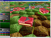 これまでにも「ここ」などでお伝えしてきたシステムソフト・アルファーの「大戦略VII」だが,今回入手したα版は製品版には遠いものの,ゲームの雰囲気をつかむには十分なものであった。本サイトの読者ならご存知だろうが,ターン制の現代戦シミュレーションの雄といえる本作。ユーザーは敵首都を陥落すべく陸海空の兵器を駆使して戦うわけだが,なんといっても今回の目玉は"6層ヘックス制の導入"だろう。 "VII"の高さの概念は海中,海上,地上,低空,中空,高空の6種類があり,航空機などはZ軸への移動も可能なのだ。航空機だからといって常に高空に存在するわけではなく,低空,中空,高空の3階層を使い分けて自由に移動できるわけだ。実際の操作インタフェースは,移動メニューを選んだときにまず高さ(低空,中空,高空)を選び,次に移動先を指定するようになっている。 高さの概念があることから分かるように,同ヘックス内に複数のユニットが存在できる(1種のスタック)わけで,地上は戦車,低空にはA-10,中空や高空にF15イーグルといった構成も行える。ほかにも,戦場となるマップは3段階の俯瞰図だけではなくて3D表示も可能で,回転,拡大/縮小表示もできる。なお,3D表示時にはユニットは箱形のコマ表示となり,各面に滞在している階層,燃料量,ユニット数などが表示されるようになっている。 思考ルーチンなどは不完全で,収録マップなどもまだまだこれからといった感じではあったが,発売がすぐそこまで迫っていることから今後ニュースの登場回数は増えることだろう。今後ますます期待したい。(Murayama) (C) 2001 SystemSoft Alpha Corporation. All Rights Reserved.
