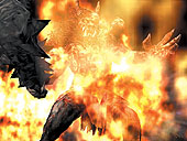 PCではないプラットフォームの情報で恐縮だが,コーエーの新作発表会で「三國志 Battlefield」と同時にプレイステーション2用の"信長の野望 Online"(以下,信長Online)が発表された。 この信長Onlineは3人称視点を採用した,3000人規模のサーバー型MMORPGだ。PCゲームファンには,EverquestやAnarchy Onlineのようなゲームシステムといったほうが分かりやすいだろう。 16世紀の戦国時代で,プレイヤーは侍や忍者,陰陽師,僧侶,神主,鍛冶屋,薬師といった7種の職業から好きなものを選び,ダンジョンやフィールドで鬼(?)や魑魅魍魎などと戦闘を繰り広げる。 特徴的なのは,その世界観だけではない。戦闘時には仲間と協力して数々の"技"を繰り出すことができたり,ギルドのような"徒党"を長く組んでいると新密度がアップして戦闘時に生かされるなど,魅力的なシステムが随所に見られる。コンシューマ機用らしく非常に派手なエフェクトでスムースに展開される戦闘シーンが特徴的。会場でキチンとデモプレイされていたぞ。またキャラクターは装備品で外観が変わるようで,また戦闘に突入すると剣や杖を構えるしぐさが戦国時代の雰囲気を感じさせてくれた。 ほかにも,コーエーらしく"シミュレーション要素"を取り入れているのも特徴の一つで,プレイヤーはいずれかの大名に属することになるが,その大名同士での領土拡大によって勢力版図が変化するらしい。このあたりの詳細は不明だが,PvP(Player vs. Player)となるのか,大名をプレイヤーが操れるのかなどが気になるポイントだろう。 発売は2002年秋で,課金システムなどは不明となっている。PCへの移植も未定となっているが,ぜひPCでも展開してもらいたいところだ。(Seal) (C)2002 KOEI Co.,Ltd.