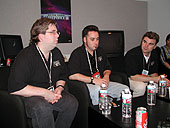 今回id Software社でインタビューを受けてくれたのは,(右上の写真左から順番に)シニアプログラマーで,Medicine Manというハンドル名でもお馴染みのジム・ドーズ(Jim Dose)氏,id Software史上初めてGame Designerという肩書きを持つマル・ブラックウェル(Mal Blackwell)氏,そして,フィジックスを担当するプログラマーのジャン・ポール・ヴァン=ワヴァーン(Jan Paul Van Wavern)氏の3氏である。
