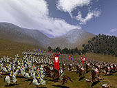 前作Shogun:TotalWarが表現してくれた,画面を覆うほどの兵士達がぶつかりあう圧倒的な合戦描写は,今見てもなお「凄い!」と感じるクオリティである。数百数千ものユニットがフィールド上で一同に会し,整然と隊列を整えながら戦っていく有様は,歴史好きなゲームファンにとってまさに一つの夢の具現化そのものといえたのだ。