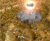 EA PLAYの目玉を一つ挙げるとすると,間違いなく「Command & Conquer:Generals」(以下,Generals)である。Genralsは,アメリカで2003年1月21日(イギリスでは1月22日)での発売を予定しており,EA PLAYで展示されていたソフトの中では唯一リリース予定時期が今年中ではないものだ。それでもElectronic Arts社が展示に踏み切ったのは,E3 2002でのデモを実際のゲームプレイだと信じなかった人が,業界関係者の中でも少なくなかったからなのだという。 Generalsを開発しているのは,数年前にWestwood Studios社から派生し,ロサンジェルス南部に支社を作ったチームで,マーク・スカッグス(Mark Skaggs)氏らが率いている。「Command & Conquer:Red Alert 2」を制作したのも彼らで,それだけにシリーズの良い部分をそのままに,完全3Dとなったグラフィックスを巧みに利用したゲームプレイが期待できるのだ。スカッグス氏は,Generalsを「CNNのライブ報道とハリウッド映画の合成」だと説明するが,それだけ派手な演出やグラフィックス効果が満載されており,なおかつ臨場感を失わないように心掛けられているのだろう。 本作の舞台となるのは,荒れた高原の多い中央アジアなど近未来のアジアやヨーロッパ地域で,GLA(Global Liberation Army)という解放軍が無謀な独立戦争を始めるという内容になる。ゲリラ戦を得意とするGLAに対抗するのは,最新兵器に身を固めた米軍と人海戦術や火力による攻撃を得意とする中国軍となっており,メンツもこれまでとは異なっているのが面白い。 武器は視覚的に楽しいものばかりで,米軍には「クルセーダータンク」という,エクソスケルトンに身を固めた飛行ユニットに空中を守らせた突撃型のタンクユニットがあるし,中国軍のタンクはナパーム火炎放射器を搭載していて遠距離の敵を焼き尽くす。GLAには高性能のタンクはないようだったが,トラックに機関銃を積み込んだりするばかりかABC(Atomic,Bio,Chemical)を持ち出してくるというやっかいものだ。また,兵士は建物に立て篭もることもできるようになっていて,マップ上のオブジェクトを戦略的に利用できるのも魅力的だ。 Generalsを見ていて感じたのは,ゲームの世界が非常に生き生きとしていることだ。町などにはNPCが往来しており,GLAの標的になったり,戦渦を見て逃げ惑う姿が描かれている。海には波が立っているし,森の中にタンクが進むと樹木が倒れていく。 ミッションは全部で21用意されており,中には200から300ユニットほどが画面上で戦闘を繰り広げるカスピ海上陸ミッションもあった。ところで,Genaralsにはかなりのスクリプトシーンも用意されているが,プレイヤーはマップエディタを使ってムービーを作ることも可能で,本格的なミッションやキャンペーンも制作できそうだ。ちなみに,このエディタはゲームのリリースに先だって,おそらくクリスマス頃には無料でダウンロードできるようになるとのことだった。(Okutani) <写真下段右> マーク・スカッグス氏。Generalsの爆発の表現の豊かさについて「現在のバージョンでは爆発が派手すぎてゲームの邪魔になっているので,もう少し抑えめにする」と語っていた