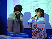 2002年12月20日にめでたく発売を迎えた,コンシューマ機で人気を博した不思議のダンジョンシリーズ最新作「不思議のダンジョン 風来のシレン外伝 女剣士アスカ見参!」(以下,アスカ)。同日には「風来のシレン インターネット版」も発売され,本格的なPC業界参入を果たしたアスカ。翌21日には発売記念を兼ねたゲーム大会が開催された。 この日会場に選ばれたのは,もうすっかりお馴染みの秋葉原の新ゲームスポット「アソビットシティ6番街 インテルオンラインゲームスタジアム」だ。毎週なにかしらのイベントが開催される場所であり,国内外のPCタイトルや周辺機器,関連書籍なども一度にチェックできるスポットである。 さて今回のゲーム大会は,参加者が大会専用にデザインされたダンジョン「アソビットシティ 6番街」に一斉に潜り,15分間のプレイスコアを競うというもの。スコアは所持アイテムや到達フロア階数などの要素をひっくるくめて算出。もちろん死んでしまうとダンジョン入り口からスタートとなるが,ルールでは死亡回数は問うていないので,プレイヤーは息つく暇なく潜り続けることになる。 来場したファンは,ほとんどが不思議のダンジョンシリーズ経験者とのことで,操作説明などはナシ。ゲームパッドやキーボードなど各自好みの環境でプレイしていた。猛者揃いとあって「結構ギスギスした大会になるのかな?」と思っていたが,この大会の司会を担当した声優の伊藤敦子氏の楽しいMCで,会場の雰囲気は終始和やか。同氏も,自他共に認める「不思議のダンジョン」シリーズのファンだそうで,各プレイヤーの画面を見ながら到達階数をアナウンスしたり,アドバイス(?)をしたりと自身も楽しんでおられるようだった。 というわけで,短いプレイ時間15分はあれよあれよという間に終了。10位までの入賞者にはアスカ特製カレンダー,そして優勝者には「マムルボンボン」が手渡されていたぞ。 またこの日のスコア集計には,アスカ公式サイトと連動した「風来人番付」を採用。このランキングシステムは,アスカのプレイ終了後にゲーム内で登録作業を行うと,自動的にWebページが更新される仕組みだ。「風来のシレン インターネット版」でも利用できるサービスだが,製品版を持っている人ならぜひ活用して,インターネットランキングに名を残してみてほしい。 なお,現在は「風来人番付」を含めた「アスカ オンライン サービス」は利用できないとのことで,正式なサービス開始日は2002年12月25日(12:00PM〜)とアナウンスされている。それまでに腕を磨き,開始と同時のスタートダッシュに備えるといいだろう。(Gueed) 「不思議のダンジョン 風来のシレン外伝 女剣士アスカ見参!」の特設ページは→「こちら」