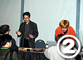 骨格や瞳孔など細かい部分の描写がリアルすぎて,すでにアニメの浸透によって記号論が発達している日本では受け入れられなくなっている。パソコンゲームにも当てはまるテーマであり,昔から何度も議題に上がっていることではあるが,クラッシュ・バンディクーを始めとする証拠と実例があるだけに,彼らの発言に聞き入る聴講者が多かった。長谷川氏は,最後にアメリカ人と日本人開発者の間でのコミュニケーションは不可欠であるとし,カラオケ親睦会を含めた率直な交流を促した。