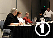 「Story Summit」というゲームデザイン・トラックの特別コースだ。業界の重鎮でもあるLucasArts Entertainment社のプロジェクト・リーダー,ハル・バーウッド(Hal Barwood)氏らを始め,連戦練磨のゲームデザイナーやスクリプトライターが集まっている。講義の主な内容は,ゲーム用の脚本を書く場合に突き当たる諸問題を解説しながら,ジャンル別にどのような違いを考慮するべきを,それぞれのパネルが自分の立場から語り合う。