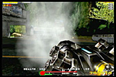 先日「こちら」の韓国ニュースでお伝えした,Serious Samエンジンで開発された,撃ちまくりFPS「Nitro Family」の公式サイトが「ここ」にオープンした。 公式サイトでは,Nitro(ナイトロ)一家とも言える主人公ファミリーが紹介されている。主人公はVictor Chopskiという28歳の男性。両親が亡くなった後,たった一人で山篭りをしており,狩りの名人としての呼び声も高いアメリカ人。そして,Victorの最愛の妻にして有能なパートナーのMaria。ラスベガスでもっとも有名なサーカスで,猛獣の調教師として働いていたらしい。なんでもVictorが彼女に一目ぼれしたとか。 そして二人の息子Red "Chief" Chopski,2歳。ナイフで小動物を狩るのが何よりも好きという,かなり危ない子供(というよりガキと言いたい雰囲気)。 ストーリーは,誘拐されたRed "Chief" Chopskiを追い求めてのVictorの冒険となる。誘拐したのはGolden Bellという組織で,Victorが持っている超人的な身体能力に目をつけてのこと。そして,Victorは愛するわが子を救い出すために,危難も省みずGolden Bellに戦いを挑むこととなる。 ゲーム全体のノリが,いかにもSerious Samっぽく,この手のFPSが好きな人なら気に入りそうだ。Victorは両手に武器を装備できるのだが,それぞれ違う武器を持てるようになっているのが特徴で,Combo攻撃と呼ばれる,連続技が決まるようになっている。また,彼の奥さんのMariaが,ゲーム中にアドバイザーとして登場したり,危ない所に現れては,爆弾を投げてVictorを援護してくれたりもするそうだ。 公式サイトでは,多数のScreenshotsとゲームプレイムービーが公開されている。撃ちまくりの様子や,Combo攻撃がヒットしたところなど,見所満載のムービーなのでチェックしてみよう。発売は2003年12月の予定。(Asakura)