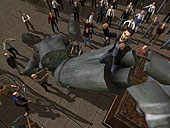 総計で100万人のキャラクターが用意されており,一人一人が個別の名前や政治思想,そして生活パターンを持っている。今回のデモで使われていたのは,Pentium4/2.4GHzというシステムだったが,ゲーム中でカク付くこともなく稼動しており,開発もラストスパートに入っていることを思わせた。(奥谷海人)
