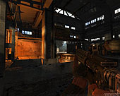 これは,GDCの開発陣が同言語(ロシア語)を話す背広軍団に見せていたもので,筆者は彼らが商談に去った後ですかさずチェック。残念ながら敵は用意されておらず,工場の隙間を歩き回るだけだったが,モデリングやテクスチャの細かい技を確認するには十分だったのは言及しておく。さらに,筆者の背後で「最近,僕らの間では注目してるんだよね」と会話していた男たちを見ると,「Half-Life 2」のレベルデザイナーとプログラマが立っていたのも,Stalkerの注目度の高さを物語るには十分なエピソードだろう。