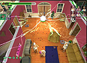 「Ghost Master」は,イギリスのSick Puppies社によって開発されているストラテジーゲームで,本国ではEmpire Interactive社が,アメリカではVivendi Universal社によって9月頃に流通される予定だ。日本でも某社から発売されるという話を会場で耳にしたが,まだ公式ではないため,ここでは伏せておくことにしよう。 画面の雰囲気は,今回のE3で発表されたばかりの「The Sims 2」と非常に似ているが,「Ghost Master」はゲーム中の人間キャラクターに住みやすい環境や人間関係を提供するのではなく,逆に幽霊や妖怪を使って館から追い出してしまうのがプレイヤーの目的という,全く逆のコンセプトで作られている。以前のインタビュー記事のときに詳しく説明しているが,現時点では最終的な数字も発表され,14種類のマップのミッション内容に合わせて,総計で47種類のモンスターの中から3〜11種程度を選んでチームを結成することになった。 E3デモで紹介されていたミッションは,これまでに公開されていなかったもので,10数人の人間が暮らすマンションの中の3人が黒魔術を使おうとしている。プレイヤーは,この黒魔術が良からぬ方向に進展したときのことを考えて,儀式の前に邪魔な他の人間キャラクター達を追い出してしまおうと奮闘するのである。 プレイヤーは,まずマップを詳しく見て回り,そのミッションがどのような状況になっているのかを見極めなければならない。大抵の場合,大昔に殺されて埋められたままの死霊とか,電気製品に縛られて離れられない自縛霊などが存在しており,それらを解き放った後に,彼らの能力を利用してミッションを遂行していくというような流れになる。 今回,Ghost Masterで新しく公開されたのが,「シムピープル」のバブルに相当するような,個々のキャラクターの思考状況を伝えるグラフィックだ。これは,特定のキャラクターが何にを怖いと感じるかを示すもので,プレイヤーがあの手この手を使いながら接しているうちに判明する。合計で8種類の恐怖症が用意されていて,暗所恐怖症や閉所恐怖症はもちろん,クモや汚れに対する恐怖症が含まれるようだった。 Ghost Masterは,「ダンジョンキーパー」のようなゲーム性を備えており,ジョークや名作ホラー映画をパロディーにした場面も多く,コアなゲーマーからカジュアルゲーマーまで,幅広い層にアピールできそうだ。(奥谷海人)