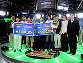 2003年6月16日,「こちら」のNewsでお伝えした「マイクロソフト エイジ オブ ミソロジー」のアジア大会「Club MS Age of Mythology Asia Championship」の全日程が終了した。 本大会は,韓国から8選手,台湾,日本からそれぞれ4選手が招待されてアジア最強を決めるという国際大会。筆者(Halen)もお誘いを受けて参戦していたのだが,先日の準決勝(詳細は,「こちら」)でなんとか勝利を収め,決勝が行われる韓国へ行ってきた。 決勝戦は,韓国はソウルのCOEXモールで行われた。 COEXモールは,200以上のお店が軒を束ねるショッピングセンターやオフィス,そしてさまざまなイベント用のスペースがあり,国際的なゲーム大会World Cyber Gamesの会場になったこともあるところだ。試合の様子は韓国ではテレビ放送されるので,筆者はてっきりテレビ局のスタジオで行うものだと思っていたのだが,そこはXboxの体験コーナー。数え切れないほどのテレビとXboxが置かれており,中央に決勝用のサイバーなステージが用意されていた。 本番前にはテレビ出演には欠かせないメイクをしてもらったのだが,初めてということもあり妙に緊張した(笑)。鏡を見てもあまり変わった印象はなかったが,カメラ写りがどう変わったのか気になるところ。 そして,いよいよ番組スタート。まず,韓国語で軽く挨拶をして,簡単な質疑応答へ。どでかいカメラに多少違和感を感じたが,どうやらさほど緊張せずにすんだらしい。 決勝戦の前には,イベントマッチとして韓国のgrunt選手と筆者 vs. 韓国のkimchisarang選手と,筆者の決勝の相手である台湾のIamShiautz選手といったチーム戦が行われたのだが,順調に試合を進めつつも,PCのトラブルで逆転負け。なぜか筆者のPCのみ処理低下状態に陥り,ほとんど操作不能に……。再起動はしたものの,スタッフに聞いてもPCの変更はできないとのことだったので,不安を抱えつつも決勝へ。 決勝は3ゲームで争った。まずは1ゲームめ。幸い,PCは大丈夫のようで,思い通りのプレイができたと思う。こういった大会で,相手を前にしての連戦は初めてだったので,1ゲームめ終了後には反省点や相手の弱点,心情などを真剣に考えてみた。それでも2ゲームめは負けてしまい,そこで初めて相手の強さを実感した。でも,プレッシャーには強い自信があったし,最終ゲームの前には,負けへの不安よりも,どんな試合になるんだろうかとわくわくしていたものだ。 そして,最終ゲーム。まさに期待通りの内容になった。展開的にも相手が有利に進め,主導権は相手が握っていただろう。しかし,こんなに楽しいゲームは始めてだったかもしれない。頭の中には試合中にも関わらず,「AoMってサイコーすぎ」って言葉ばかり浮かんでいた。それと同時に,こんなに強いプレイヤーがいることに対して,言い方がおかしいかもしれないが,感謝していた。 結果は筆者が運よく勝利し,2勝1敗で優勝。放送終了後に表彰式が行われた。 花束と目録を戴いてますます実感と喜びが湧いてきたところで,IamShiautz選手が筆者に「次は絶対負けないから」と一言。彼とはWorld Cyber Gamesで再び会うことを約束した。 思えば,実に約1か月半もの期間を毎週地道に戦ってきたわけで,予想外の出来事,日本人の仲間の敗退などショックなことも多かった。だけど,彼らは今それをバネに日々がんばっているだろうし,いい経験になったのではないだろうか。また,筆者も本大会を通じて大事なことをいろいろと学ばせてもらった。時間に追われながらの練習,日本の大会では考えられないテレビ放送,そして決勝戦は真剣勝負ながらもゲームを楽しむことを思い出させてくれた。 最後に,この大会に招待してくれた韓国MBCgameの番組プロデューサーさん,主催のMicrosoftとMBCgame,参加選手達,そして応援してくれたみなさん,本当にありがとうございました。(Halen) 最終結果 優勝 Halen(日本) 準優勝 IamShiautz(台湾) 3位 IamJordan(台湾) セーブゲーム(全3ゲーム)は下のリンクからどうぞ。 決勝戦 Halen vs. IamShiautz(3ゲーム)「こちら」 Copyright(C) Since 2002, MBCgame All Rights Reserved.
