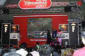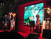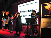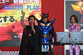 ゲームオンのステージは,なんと太鼓の音で始まった。 太鼓の音に合わせて登場したのは,なんと獅子舞。どのステージも賑やかだったOnline Game Fantasistaだが,ゲームオンのステージは,どことも違う,不思議な雰囲気で進められた。 まず最初に登場したのは,現在正式サービス中の「天上碑」。天上碑のプレイムービーが流され,ゲームの内容や現状が紹介された。ただ,やはり現在βテスト中の2タイトルに力を入れたいのか,割とあっさりと終了。続いて,「ミュー 〜奇蹟の大地〜」の紹介が始まった。 司会者に呼ばれて登場したのは,ミューのプロデューサー小島氏と,GM(ゲームマスター)を務める二人。なんと小島氏は黒マント姿(ウィザード?)で,GMの二人はナイトと,チャイナドレス(?)といういでたち。ステージ下にいた別の女性GMもチャイナドレス姿と,"仕掛け屋"小島氏らしい演出である。 しかし,小島氏のイリュージョンはこれから。前述のチャイナドレスGM「月」による,「こんなミューは嫌だ!」(なぜか「by てつけん みゅ〜」となっていたが。お笑いタレント鉄拳との関係は不明)。 「ラスボスが,タマちゃん」「エンディングが,夢オチ」など,個人的にはなかなか面白いと感じるネタが多かったのだが,本人の名誉のため,会場の反応は割愛する(あとで本人に話を聞いたら,「凄く恥ずかしかった……」とのこと)。 続いて,小島氏による三つの約束が語られた。まずは,延ばし延ばしになっていたNPCのセリフについて。これは「私小島が,来週徹夜して作ります」とのこと。 そして新しいエモティコン(特殊なモーション)の追加も発表。キャラクターが全身で「グー」「チョキ」「パー」を表すエモティコンが追加されることで,アイテムの所有権でもめたときに,じゃんけんで決められるようになるようだ。確かに,便利かも。 最後は,チャットシステムの改善について。ミューの開発元のWebzen社は,8月13日までに作るといっている模様。期待して待とう。 さて。次に行われたのは,海底世界アトランスを舞台にした,シンクロナイズドスイミング大会(?)。スクリーンにミューの画面が表示され,ステージ上のGM「月」が操作するキャラクターが,リッキー・マーティンの曲に合わせてエモティコンで踊るという,なんともシュールな企画だ。 この企画を聞いて集まってきた一般のプレイヤーと一緒に踊っていたのだが……,やはりシュール。この時間,「異世界感」を感じていたのは筆者だけではないだろう(いや,観客ウケは良かったようである)。 その後プロモーションムービーが流れて,ミューは終了。 トリを飾ったのは,日本,韓国,中国,台湾のプレイヤーによるバトルロイヤルイベント「Cronous World Championship」(以下,CWC)の開催を明日(7月26日)に控えた,「眠らない大陸 クロノス」。当然ステージも,CWC一色となった。 ミューのGM集団と入れ替わりに登場したのは,クロノスのキャンペーンガールの片瀬ゆきさん。CWCの大まかな説明のあと,片瀬さんによって,昨日行われた前夜祭の様子が紹介された。この前夜祭については当サイトの「ここ」に詳しいので,未読の人はチェックしておくべし。 そして,ステージの観客が,あらかじめ渡されていた「日本国旗」を振るなか登場したのは,明日のCWCに参加する,三人の選手。三人それぞれが明日にかける思いを語っていたが,「絶対優勝します」的な,頼もしい発言ばかり。参加選手数で圧倒的に不利……ていうか正式サービスすら始まっていない日本だが,果たしてどのような成績を残せるのか? 同じ日本人として,非常に期待したい(例のCWCトトカルチョ「こちら」もあるし)。 ゲームオンのステージは,最後にまたミューのGM軍団も登場し,全員で日本国旗を振るなか終了した。最初から最後まで,ほかのステージとは違った不思議な空気に包まれていたが,観客達の反応を見る限り,大成功だったといっていいんじゃないだろうか。(Iwahama) →「天上碑」の当サイト内の記事一覧は,「こちら」 →「ミュー 〜奇蹟の大地〜」の当サイト内の記事一覧は,「こちら」 →ミュープロデューサー小島氏へのインタビューは,「こちら」 →「眠らない大陸 クロノス」の当サイト内の特設ページは,「こちら」 →「Cronous World Championship 攻略指南の書」は,「こちら」