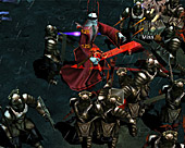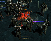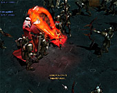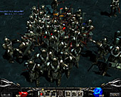 ゲームオンによってβテストが行われている,ファンタジーMMORPG「ミュー 〜奇蹟の大地〜」に,2003年8月14日より新クエスト"デビルスクエア"の導入が決定,発表された。デビルスクエアとは,まさしくその名の通り"悪魔の広場"で,"呪いの王"が支配し,倒しても倒してもモンスターが出現する修羅場となっている。 デビルスクエアに入るには,"悪魔の鍵" "悪魔の瞳" "混沌の宝石"の3つのアイテムを集め,エルフの村ノリスにいるカオスゴブリンに,ゼン(ゲーム内の通貨)を払って"悪魔の招待状"を合成してもらわねばならない。その悪魔の招待状を,やはりノリスにいる伝道師カロンに渡すことで入れるようになっている(合成には失敗もあるらしい)。 デビルスクエアには,4つのレベルがあり,キャラクターレベルとスクエアのレベルが同じ場合にのみ入れるようになっている。中では,倒したモンスターが次々と出現してくるため,時間制限の20分間はまさに戦い詰めという修羅場となる。このあたりは,下の画面写真を見ていただきたい。とんでもない数のモンスターに囲まれているプレイヤーを見ることができる。入場前後にはパーティを組めるというので,単独で戦うのは避けた方が無難そうだ。 この20分間をデビルスクエアで戦い抜いたものは,多量のゼンと経験値をゲットし,"ハイランダー"と呼ばれ,ランキングもつけられるというので,高レベルのプレイヤーにとっては,チャレンジしがいのあるクエストとなるだろう。ミュープレイヤーは8月14日を期待して待とう!(Asakura)
