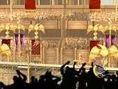 Acclaim社としては久々のPCゲーム市場へのエントリーとなる「Gladiator:Sword of Vengeance」は,XboxやPlayStation2でも10月頃に同時リリースされる予定のアクションアドベンチャーゲームである。プレイヤーは,ローマで最高の剣闘士と評されるインビクタス・レックスとなって,皇帝に命令されるがままにスタジアムで生死をかけて戦い,やがてはローマ帝国の存亡に関わる大事件に巻き込まれていく。 さてPC版だが,コンシューマ版を比べるとカメラを引いた感じで若干キャラクターが小さくなっている雰囲気。しかしその分,周囲の様子は解像度の高いテクスチャで表現されるようになった感がある。 序盤は比較的ゆったり……という作品が多いこの手のジャンルだが,本作ではゲーム開始早々からアクションに次ぐアクションが待ち構えており,嫌と言うほど繰り出されてくるグラディエーター(剣闘士)と戦っていかなければならない。筆者がプレイしたバージョンはまだ開発中のモノであり,また幸いなことに(?)ゴッドモード(無敵モード)になっていたようで,問題なく序盤を切り抜けることはできたが,皇帝の執拗なまでの攻撃は,どことなく剣闘士という名の戦闘奴隷の哀愁を表現しているように感じてしまった(襲い来る剣闘士たちも別に"悪者"というわけでもないだろうから)。 ゲームパッドを使用したプレイ操作も特徴で,ボタンをガチャ押ししていればそれなりのコンボプレイも発生するのはコンシューマライクな部分。また感心させられたのは闘技場の臨場感の表現で,プレイヤーが何かの行動を起こして舞台に血が飛び散るごとに,観衆のワーっという歓声が巻き起こるのである。最初のステージで数十人の剣闘士と戦ったが,キャラクターのモデルは4種類ほどしかなく,アニメーションのバリエーションも物足りなかった。ただ死体や血のりはずっと残ったままであり,戦闘後に落ち着いて見る風景はかなり陰惨な雰囲気であった。 スタジアムでの戦闘の後は,白いもやに包まれた空中庭園のような場所に移動し,ここで仮面をつけた2人の少年から,自分の闘士としての宿命を告げられる。どうやらこの空中庭園は,様々なエリアへ移動するためのハブ的な存在のよう。ここを軸にして,プレイヤーは冒険を繰り広げていくのだと思われる。その後は,映画「アルゴノーツの冒険」に出てくるような海岸沿いへと移動し,そこでスケルトンとの戦いが勃発。さらに先に進むとミノタウルスやメデューサなどギリシャ神話に登場する聖獣たちと戦うことになるとの話だった。 アルゴノーツ的な冒険活劇色に加えて,「グラディエーター」や「スパルタカス」といった歴史映画的な雰囲気も内包している本作。アクションゲームファンはチェックしておくといいかもしれない。(奥谷海人)