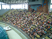 先日「こちら」で告知した「マイクロソフト ズー タイクーン コンプリート エディション」のイベントに行ってきたので,その内容をお伝えしよう。 2003年9月6日,横浜・八景島シーパラダイス アクアスタジアムにて,国内初の「マイクロソフト ズー タイクーン コンプリート エディション」のお披露目が行われた。 イベントではマイクロソフト プロダクトマネージャー風間氏が登場し,「コンプリート エディション」は,「マイクロソフト ズー タイクーン」と2つの新作拡張パック「マリン マニア」と「ダイナソー ディッグ」がすべて一緒に入ったパッケージであることが紹介された。本作には合計119種類の動物が登場し,展示場や動物のおもちゃ,お土産売り場なども500種類用意されていることから,相当凝った動物園が作成できそうだ。 また実際のゲーム画面を見ながら,動物の育成や施設の建設方法など,動物園建設の一通りの手順も解説。さらに風間氏はフルマウスオペレーションでプレイできることを強調し,会場の親子連れやカップルなどへのアプローチも。ほかにも横浜・八景島シーパラダイス トレーナーの五味さんが,動物のアニメーションが本物と非常に似ているといった感想を述べるシーンなどもあり,ゲームのアニメーションのクオリティの高さを証明する結果となった。 また別の場所では体験コーナーも用意されており,子供たちは慣れない手つきでマウスを操り,楽しそうにプレイしていた。スロットマシーンによるプレゼントなども実施されており,1等の沖縄旅行につられてきたはずの家族連れが,ついつい本作を長時間プレイしてしまうシーンも。動物園というなじみのあるテーマだけに,多くの人がプレイしていた。マイクロソフトとしては,実にいいアピールになったに違いない。 発表会というと大体が製品紹介で終わってしまうのだが,今回のイベントでは,キャッシュバックキャンペーンや隠しキャラの出現条件なども紹介され,ゲーマーにとっても嬉しい内容となった。下記に詳細を紹介しておこう。プレイヤーはぜひ隠しキャラを登場させてみよう。(Murayama) ■キャッシュバックキャンペーン 「ズー タイクーン」か「はがきスタジオ 2003 ファミリー パッケージ」を購入した人を対象に3000円の期間限定・特別優待キャッシュバック。 ※申し込み方法や期間についての詳細は「ズー タイクーン コンプリート エディション」の製品に同梱されているキャッシュバック クーポンにて紹介 ■隠しキャラ登場条件 ・ネッシー シナリオゲームで「マリンマニア:究極の動物園」を選択すると登場 ・人魚 人魚の像を水槽の中に設置する