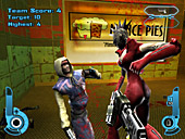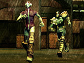 「Judge Dredd:Dredd vs. Death」は,イギリスの人気コミック「Judge Dredd」を題材としたSF FPSだ。当サイトでは,これまで「ここ」のプレビュー記事や「ここ」でも紹介しているので,すでにご存じの人も多いだろう。 Vivendi Universalによる「Asia Games Summit」で,本作のプレイアブルバージョンが展示されていたので,触ってきた。新しい情報はこれといってなかったが,かなりマスターに近いバージョンで遊べたので,プレイ感と新情報を中心に紹介しよう。 ゲームは,メガシティ・ワンと呼ばれる都市の,ジャッジ達のオフィスともいえる"グランドホール・ジャスティス"前から始まった。さすがにこの付近には凶悪犯罪者はいないものの,逮捕すべき(比較的善良な)NPCがたくさんいるので,職務質問しては,逮捕していく。 ちなみに大勢登場するNPC達は,なんと全員逮捕可能とのこと。といっても不当な逮捕をするわけではない。どうやらこの世界の住人達は,細かいものを含めれば誰もが何かしらの罪状をもっているようなのである。例えばこの世界では,喫煙ですら犯罪だというから,現代人にとっては(人によっては)住みにくい社会かもしれない……。 犯罪者を見つけた場合,相手の凶悪度に応じて,こちらの行動にいくつかの選択肢がある。比較的おとなしい犯罪者であれば注意して投降させられるし,凶悪ならば撃ち殺しても構わない。もっとも,相手の武器を撃ち落とすこともできるので,大抵の犯罪者は,生きたまま逮捕することが可能である。逮捕して裁判にかけたほうが獲得できるポイントが高いので,慣れてきたら,できる限り逮捕を目指すわけだ。 ちなみにこのポイントを溜めると,隠しステージのロックが外れたり,新しい武器を購入できるようになったりするようだ。 ここまでを読むと,本作には激しい撃ち合いがあまりないと思われるかもしれないが,それは序盤だけで,ステージが進むとだんだんと銃を活用する機会が多くなるようになっている。凶悪な犯罪者が増えてくるのは当然として,それとは別に,バンパイアと呼ばれるモンスターが登場してくるからだ。 バンパイアは,見た感じは人間に近いが,人間ではない。人間達の生活を脅かす存在という位置づけで,逮捕はできず,見つければ殺さなければならないが,火炎弾で炎に包んでも,そのままジャッジ・ドレッドに向かって襲いかかってくるほどのタフなモンスターだ。しかも大群で現れることもあり,次から次へと撃ち殺すことで,まるで「Serious Sam」のような爽快感が味わえた。 さらにステージによっては,凶悪な犯罪者とこのバンパイアが大勢登場する場面もあるようである。これは単に2種類の敵がいるということではなく,ポイントを稼ぐために,犯罪者達がバンパイアに殺されてしまわないように守ってあげる必要もあるということなので,複雑な三つ巴の戦いが展開しそうである。 ちなみに本作のデモンストレーションに使われていたPCは,Pentium4/3.0GHz+メモリ 1GB+RADEON 9800と,現在考えられるほぼ最高級の環境だった。当然このPCでのプレイは非常にスムースだったが,今回デモンストレーションを行ってくれたリードアーティスト兼プロデューサーを務めるTim Jones氏にスペックについて水を向けたところ,かなりのロースペックでも動くように調整中だとのこと。具体的には,PentiumIII/700MHz以上+GeForceでも動くようだ。筆者が「GeForce4?」と聞き直したら,「いや,GeForceシリーズだよ。GeForce2でもいいしね」との返事だった。 さて,これまでも何度かお伝えしたように,マルチプレイモードの多様さも本作の特徴である。デスマッチやイリミネーション(一死退場),ジャッジ側と犯罪者に分かれたり,画面を分割してシングルプレイヤーモードを4人までで遊ぶコーペレイティブモードまで搭載している。 ちなみにマルチプレイでは,さすがにローメーターの意味はないようだ。これは当然の処置といえるだろう。また,マルチプレイ用マップは以前紹介したときよりも若干増えて12種類となっていた。 ところで本作の発売日について,以前は2003年11月に発売予定とお伝えしたが,今回の展示では2003年後半と,少し曖昧な表現に変わっていた。とはいえ開発は順調に進んでいるとのことで,今回の展示に合わせてデモ版も公開されていた。このデモ版紹介記事も,のちほど当サイトに掲載するので,お楽しみに。(Iwahama) →「Judge Dredd:Dredd vs. Death」のプレビュー記事など,当サイト内の記事一覧は,「こちら」 (C)2003 Rebellion. The Rebellion logo, 2000AD logo, Judge Dredd and associated characters, objects and locations are trademarks or registered trademarks of Rebellion A/S in the U.S. and/or other countries. All rights reserved. Developed by Rebellion. Published by Vivendi Universal Games International. Sierra, the Sierra logo, are registered trademarks or trademarks of Sierra Entertainment, Inc. in the U.S. and/or other countries. All rights.