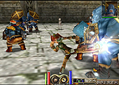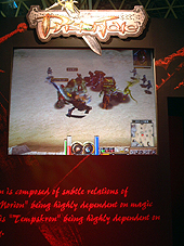 ■「プリストンテール」 「プリストンテール」は,剣と魔法の世界をモチーフにしたMMORPGだ。国内では2002年からツイムネットが運営を手がけていたが,同社が2003年に倒産したため存続の危機に陥っていた。現在はサーバーを韓国に置いて,Moriah Japan(Prinston Tale開発元の日本法人会社)が運営サービスを,exciteが課金などを担当している。 ブースの担当者に話を聞いたところ,展示されているものは現在稼動しているバージョンと同じもので,とくに東京ゲームショウのために拡張やパワーアップをしたものではなかった。やや残念。 やはりMMORPGだし,心機一転運営元も変わったことで今後の拡張や大幅なアップデートが気になるところだが,「新しいシステムとして,サバイバルモードなどを考えています」との返事がもらえた。サバイバルモードはプレイヤーとモンスターによる生き残りを賭けた戦いが楽しめる。詳細は不明だがどうやらチームで協力して戦っていくことになりそうだ。ほかにも韓国モノではおなじみのPKシステムの導入も考えているそうで,プレイヤー同士の腕試しもできるようになる。これらの導入時期については教えてもらえなかったが,話しぶりから察するにそれほど遠い話ではなさそうな感じだった。 また,現在韓国に置かれているゲームサーバーを日本に移動するという話も出てきているそうで,もしそれが実現すれば,より快適なプレイが楽しめるようになるかもしれない。プレイヤーは期待していよう。 ■SHOT-online 「プリストンテール」のステージ横の柱の影に,ひっそりと置かれていたタイトルが,「SHOT-online」というMMOゴルフゲーム。韓国では2004年にβテストが始まる最新タイトルで,2000人の同時アクセスが可能なリアル系のゴルフシミュレータである。MMOということで街などもあり,そこではゴルフクラブの購入や服のコーディネイトなどが可能。アバターのようなシステムを見ることができた。 基本的には街で仲間を募ってゴルフをするようなものだろうと思っていたが,本作には驚くべきシステムが。なんと,ギルド同士の戦いが楽しめるというのだ。ゲームではゴルフクラブなどを購入できることから,お金を賭けてゴルフで対決するのだろう……と思っていたら,これまた裏切られた。なんと,試合で賭けるモノはゴルフコース。日本のゴルフゲームでは見られないシチュエーションだけに少々驚いてしまった。ちなみにゴルフコースはみんなが自由に利用可能なフリーコース,ギルドの所有物(プレイにはギルドにお金を払う必要あり),トーナメントで使われる特殊なコースの三種類があるらしい。 また選手の動きは韓国のプロゴルファーをモーションキャプチャ−しており,かなりスムースな動きをしていた。ゴルフコースも実在のものであり,国内で運営するときには日本の実在コースに差し替える予定らしい。リアル系ゴルフシミュレータとして良くできていると思ったが,ギルドシステムという微妙な味付けが,普通のゴルフゲームプレイヤー受け入れられるかどうかが,成功のカギを握っているような気がする。個人的にはこういった遊びは好きだが,まじめなゴルフファンからみると抵抗がある気も。リアルならしっかりリアルに,遊ぶならトコトン遊んでもよかったのではないだろうか?(Murayama)