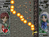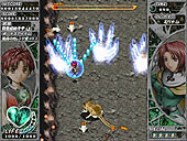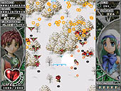 エグゼクリエイトの"フラン"シリーズは,天使や悪魔,地上人が登場する天上界と地上界を舞台にするアクションRPG。その最新作「フランIII」では,前作「フランII」から料理,工作,恋愛システムを継承し,さらにパワーアップしたのが印象深い。 そのフランIIIの登場人物などの舞台設定が同じで,各キャラクターのサイドストーリーが展開する縦スクロールシューティング「フランIII 外伝」(以下,外伝)が登場した。外伝では,炎と氷の2属性を切り替えながらの攻撃と大ダメージを与える溜め攻撃,6人のパートナーのスペシャルアタック(=ボム),アイテムでのパワーアップなど,シューティングゲームの"基本"を押さえてあるだけでなく,いろいろな要素も詰め込んであるのが特徴だ。 外伝では,シューティングゲームの弾幕系(敵弾が画面を埋め尽くすほど多い)という部類に入りそうなほど敵弾が多いシーンもあるが,難度は比較的やさしめのバランスとなっているので,何回か繰り返しプレイすれば先に進める。難易度も3段階用意されているのも嬉しい部分だ。 また,フランIIIで採用していたオンラインとの連携も健在で,外伝ではインターネットに接続した環境でプレイすると,ランキングに応募できる。リプレイ機能もあるので,シビアな得点争いに白熱しそうだ。 本編を遊んでいた人には,懐かしいキャラクター達が登場するのでぜひプレイしてみよう。 外伝はダウンロード販売のみで,価格は2980円。ただしフランIIIのユーザー登録をしてある人は特別価格の2500円で購入でき,また外伝を購入後にユーザー登録をした場合は,フランIIIを4500円(通常価格5000円)で購入できる特典もある。 なお,体験版が「こちら」にUpしてあるので,気になる人は遊んでみてほしい。(Seal) (C)2003 EXE CREATE ALL RIGHTS RESERVED.