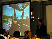 シムズ氏の技術的な解説は,先日「こちら」でお伝えしたものと内容はほぼ同じで,新GeForce FXシリーズのGeForce FX 5950UltraとGeForce FX 5700Ultraの2機種の発表に終始するものだった。解説では,「S.T.A.L.K.E.R:Oblivion Lost」のデモを使って,画質の向上とリアルさを強調していたが,当サイトの読者は同作の美麗さは知っていることだろう。