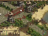 コサックスシリーズの流れをくむ「アメリカンコンクエスト」の拡張版「アメリカンコンクエスト 〜自由の女神〜」が,2004年3月12日にズーより発売される。価格は7980円。 最大1万6000人のユニットがぶつかり合う"自由の女神"は,前作アメリカンコンクエストと同じく,1517〜1804年のアメリカ大陸を舞台にしたRTSである。新たな植民地獲得を目指す,イギリス,スペインといった西洋国家に加えて,マヤ,インカなどの現地民族も登場。本作は,アメリカ大陸をめぐる壮大なる戦いの歴史を味わえる,数少ない作品の一つだ。 新たにドイツ,ポルトガル,ロシア,オランダ,ハイダ族の5か国が参戦,50種類のユニットと39種類の建物が追加されるほか,ドイツ軍による黄金郷エルドラド探索や,アラスカ支配を目論むロシアとハイダ族との戦いなど,8キャンペーン,全26ミッションが追加されている。 前作からの大きな変更点としては,まず新たなモードとして「バトルモード」が搭載されている点が挙げられるだろう。これは,内政的な要素が省かれた,純粋に戦い(戦術)のみを楽しめるモードのこと。元々アメリカンコンクエストは,士気や隊形といった戦術的な要素が非常にうまく盛り込まれていた作品だ。それだけに,戦闘だけをとにかく楽しみたい,と感じていた人も多いはず。そんな人にとって,このバトルモードの追加はちょっと嬉しい要素だといえるだろう。 拡張版に当たる"自由の女神"ではあるが,前作アメリカンコンクエストを必要とせず,スタンドアローンでの起動が可能な点も見逃せないところ。本作は,歴史ゲームの中でもかなりの完成度を誇る作品だけに,まだアメリカンコンクエストを遊んだことがないという人も,この"自由の女神"をチェックしておいてほしいところだ。 ゲームのより詳しい情報が知りたいという人は,当サイトの「こちら」に前作アメリカンコンクエストのレビュー記事を掲載しているので,そちらに目を通しておくといいだろう。(TAITAI) →前作「アメリカンコンクエスト」の記事一覧ページは,「こちら」 (C) 2003 CDV Software Entertainment AG. All rights reserved. CDV, the CDV logo and American Conquest - Fight Back are either regis-tered trademarks or trademarks of CDV Software Entertainment AG or GSC Game World in the US and/or UK and/or other countries.