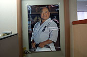 "大山倍達"氏のポスターだった。開発スタッフの一人に聞いてみたところ,プログラマーの一人が大山氏のファンだからということだった。韓国でも大山氏の人気は高いらしい。