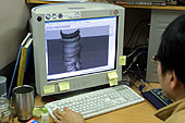 開発ルームで一番驚いたのが,大山氏のポスター。韓国でも氏の人気は高いらしい。武器や建物のデザイン本がずらりと並んでいるのも印象深かった