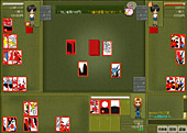 普通の花札を使用してのゲームではあるが,同種類の札4枚すべてを一度に取ると,相手プレイヤーが場に出している札から好きなものを一枚もらえるというルールが採用されている。 ほかの花札ゲーム同様,「いただき花札」も無料で遊べるので,ぜひプレイしてみよう。(Asakura) Copyright (C) 2003 NHN Japan Corporation All Rights Reserved.