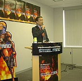 ゲームの詳細部分は後ほどお伝えするが,STEEL FANGとは,カプコン/セガ/ネクステックの3社が共同開発を行ったアクションゲーム。「バイオハザード」を開発したカプコン第4開発カンパニーが監修,世界観設定に宮武一貴氏(スタジオぬえ),キャラクターデザインには箕輪豊氏を起用するなど,豪華なスタッフ陣が大きな特徴だ。国産のPCゲームとしては珍しい3Dアクションというジャンルも含め,いろいろな意味で注目の作品だといえる。 運営に関してはニフティ側が行い,@niftyのIDがないとゲームをプレイできないというところも重要なポイント。インターネット/ブロードバンド環境が急速に整いつつある昨今,プロバイダー間のコンテンツ獲得競争が激しさを増しているという流れがあるが,このSTEEL FANGも,そういった背景を多分に含んでいる作品だといえるだろう。 発表会は,ニフティ本社がある大森ベルポートA館の6階にあるプレスルームで行われた。まずは,ニフティのコンテンツ部 部長である木皿信也氏が挨拶を行い,その中で「ブロードバンド普及が驚くほど進んでいる今,ニフティとしてもコンテンツ部分に力を入れていきたい」と語り,続けて「スティール・ファングは,今年の目玉となるコンテンツだと思うし,期待もしている。我々が運営するGame@niftyでも積極的に展開していく」と,本作そしてゲームコンテンツ事業に賭ける意気込みを語った。