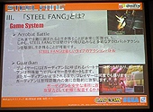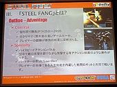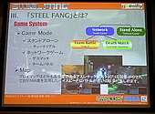 ほかにも寺岡氏は,本作を作るにあたって影響を受けた作品として,「カウンターストライク」や「アンリアル トーナメント」といった対戦型のアクションゲームとして世界的な知名度のあるタイトルの名を挙げ,それらの作品の完成度の高さを認識した上で,STEEL FANGがまた違う方向性の作品であることを強調し,発表会を締めくくった。 日本の大手ゲームメーカーによる新たなオンラインゲームの発表,それが"MMORPGではないこと"など,そしてニフティによる独占提供……などなど,何かと話題の尽きない本作。今後βテスターの意見を積極的に取り入れてブラッシュアップを行い,より高い完成度を目指してもらいたいものだ。 ちなみにニフティによる独占提供という部分だが,現状ではまず6か月の間ニフティ独占という形を取り,その後の予定は未定だとのこと。STEEL FANG自体の展開はもちろんだが,日本において,オンラインゲームがブロードバンドコンテンツの主軸になり得るのか否か,関係者の注目が集まっている。(TAITAI)
