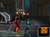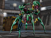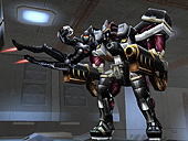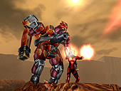 開発者自らが「アーケードゲームを意識した」と公言しているだけあって,本作のプレイ感触は非常にライト。6種類のプレイヤーキャラクターの中から一人を選択するところなども,どことなく格闘ゲームなどに近い印象だ(その他のキャラクターは随時追加予定)。当然各キャラクターには一長一短の個性が設けられ,攻撃重視,防御重視,移動速度重視などその種別はさまざま。選択したキャラクターによって,いろいろな戦い方を目指せるところは,オンライン対戦ゲームとしてはユニークな仕様だろう。 またプレイヤーキャラクターと対になるロボット「ガーディアン」の存在も,本作の重要なポイントだ。ガーディアンとは,プレイヤーキャラクターの遺伝子パターンを記憶している機動兵器。内蔵する遺伝子データバンクからプレイヤーが操作するサイ・クローン・ミュータント・ソルジャーを再生する能力を持ち,このガーディアンが破壊されてしまうと,そのゲームは敗北となってしまう。言うなれば,プレイヤーが守るべき本拠地のような存在だ。逆にガーディアンが破壊されなければ,クローン兵士であるプレイヤーはいくらでも再生が可能。なので基本的なスタンスとしては,ガーディアンは少し後方で待機しつつ,プレイヤーキャラクターが前線に突貫,敵の攻撃を潜り抜けながら,敵方のガーディアンに攻撃を加えていくことになる。いかに敵兵士を無視して,ガーディアン本体へのダメージを蓄積させていくか,そこが本作における勝負の分かれ目となるワケだ。 とはいえガーディアンには高い防衛能力が備えられており,前面に押し出して攻撃の基点とするか,果ては後方からの援護射撃用として使うかなど,その使い方はプレイヤーの好み/戦略次第。キャラクター(ガーディアン)の個性に合わせた戦法の研究が必要になってくる。