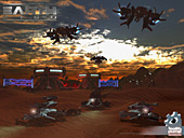 「Earth 2160」は,西暦2160年の未来を舞台に,人類や機械生命体,そしてエイリアンによる戦いを,4種類のシングルキャンペーン(それぞれに7つのミッションが収録)でプレイできる。 マップは火星,土星の衛星タイタン,木製の衛星イオ,海王星の衛星トリトンが用意されている。地球上のマップが登場しないのは,ゲーム内ではすでに地球が滅んでしまっているため。従って,ここに登場する人類とは,その最後の生き残りとなっている。マルチプレイは,スカーミッシュモードなど4種類のゲームモードで8人までをサポート。 発売は2003年後半の予定で,公式サイトは「こちら」(まだ完成していないが)。(Asakura)