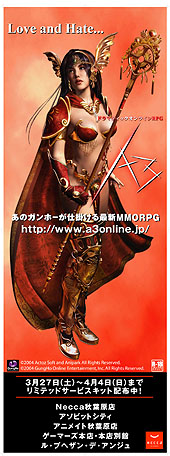 | MMORPG「A3」,秋葉原で宣伝プロデューサーの街頭演説を実施 | - 2004/03/26 19:16 |