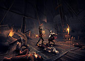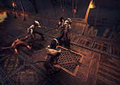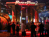さて,E3初日の朝一番にフラフラとUbiブースを訪れ最初に目が合った(?)のが,5月の頭にUbi Softから正式にアナウンスされた「Prince of Persia:The Sands of Time」(以下,PoP)の続編,Ubi Soft Montreal Studioで開発中の「Prince of Persia 2」だ。 2003年12月に発売されたPoPは,簡単なパズルと戦闘をバランスよく楽しめる秀逸なアクションタイトルとして,GDCで「Excellence in Game Design」を獲得したタイトル。 正統な続編となるPoP2は,グラフィックス周りのベースを前作から流用し,戦闘システムと主人公Princeの特殊能力,またゲームそのもののテンポにメスを入れた内容となった。 具体的には,前作にあったキャラクターがトラップに掛かった場合やケアレスミスをした場合に数秒だけ時間を遡ることができるRewindのシステムに加え,単純に時間の流れをゆるやかにしてキャラクターだけが素早く動くことができるいわゆるバレットタイムが追加されている。 このシステムはゲーム難度をコントロールするためのプレイアビリティに直結しているだけでなく,ほぼ止まった時間の中でひたすら敵に攻撃を加え,時間の流れが元に戻った瞬間,ダメージを溜め込んだ敵キャラクターがスローモーションではじけ飛ぶ(首が飛んだりする場合もある)といったように,演出面での効果が高い。 また今回ヒゲを生やしてさりげなくワイルドになったPrinceは,基本的には二刀流となっていて,前作では前転と敵の背後に回っての斬り付けのみであったアクションも相当数追加されている。 実際前作の戦闘は,"背後斬りつけ"などプレイ当初のインパクトこそあったが,ゲームを進めていくうちにたまらなく単調な作業になるという残念な代物だった。しかし今回は,首をはねる,シミターを突き刺す,相手の首を足で挟んでマップから投げ落とすといった一撃必殺系のスキルがギッシリ詰め込まれていて,戦術性の高い,そして非常にテンポの良い戦闘パートになっている印象を受けた。 アドベンチャーパートは,前作同様マップのオブジェクトにインタラクトしつつ解いていくスタイルだが,今回は,壁走り→連続壁上り→カーテンを利用して一気に落下,といった具合にトラップとトラップが実に巧妙なつながりをもっていて,プレイヤーが"待つ"という時間がほとんどないほどスピード感が増している。 全体を通して,PoP2は完全に前作の"クオリティアップ"に力を注いだ内容なので,ファンに対しては現時点でもズバリオススメといえるほど期待してよさそうだ。 発売はPlayStation 2,Xbox,GameCube,Windowsとやはりすべてのプラットフォーム用のものが用意されるとのことで,発売時期は2004年の第四四半期の予定。今回はあくまでもWorking Titleとしての出展ではあったが,製品版も,今回姿を見せたバージョンとほぼ同様となるはずなので,追ってUp予定のムービーもぜひチェックしていただきたい。(Gueed) (C) 2004 Ubisoft Entertainment. Based on Prince of Persia(R) created by Jordan Mechner. All Rights Reserved. Ubisoft and the Ubisoft logo are trademarks of Ubisoft Entertainment in the U.S. and/or other countries. Prince of Persia is a trademark of Jordan Mechner used under license by Ubisoft Entertainment. ※「Prince of Persia2」の記事一覧は「こちら」